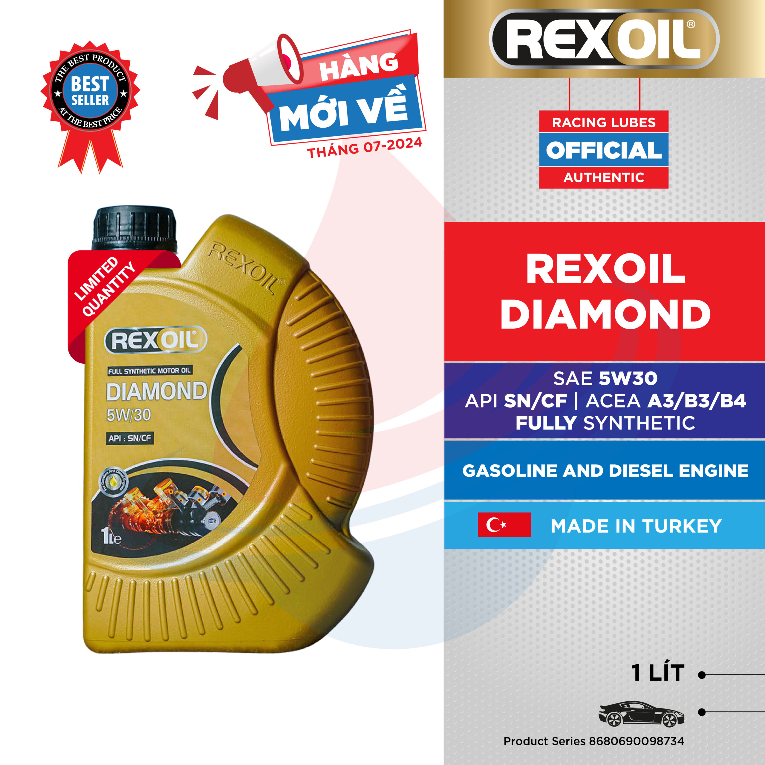 REXOIL 5W30 DIAMOND SN/CF là dầu động cơ có công thức từ loại dầu gốc tổng hợp hoàn toàn và những chất phụ gia công nghệ cao, được khuyến nghị sử dụng cho động cơ xăng hoặc diesel của các dòng xe ô tô thương mại, xe bán tải.